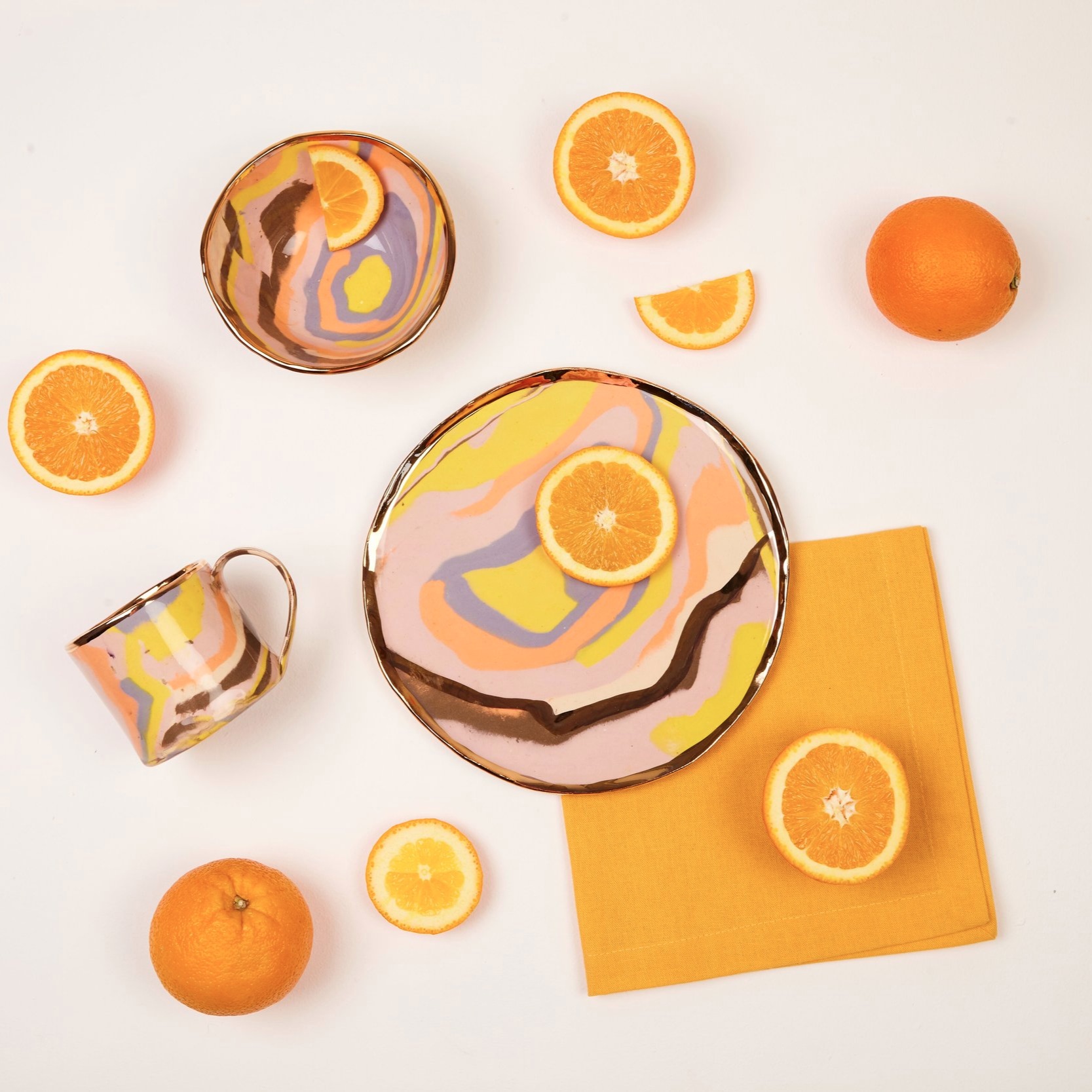 My aim is to enhance even just a moment within someone’s day through my ceramics – I’m drawn to clay specifically because it allows me to combine colour with functionality to create these objects of joy.